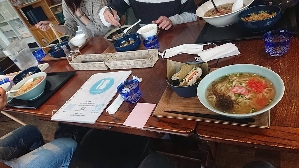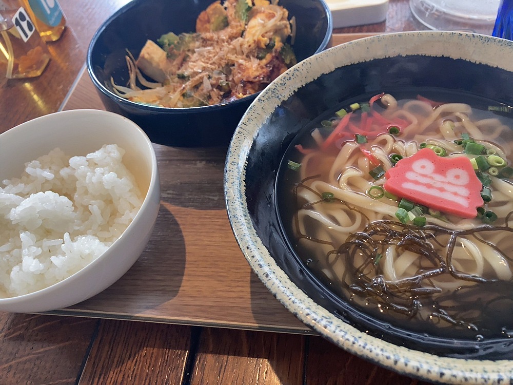 今回もわいわい🙌ウォーキング参加してくださった皆さん、ありがとうございました✨4月とは思えない気温の高さでしたが、無事に終える事ができました💦さてお待ちかね...😋ウォーキングの後は、ランチへ🍽️今回は沖縄料理のお店におじゃましました☺️シーサーの可愛いカマボコが添えられた沖縄そば🍜ゴーヤの苦味が苦手な人でも箸がすすむゴーヤチャンプル⭐️とてもワイルドでおちゃめな面白いご主人も楽しませてもらいました、ありがとうございました😊