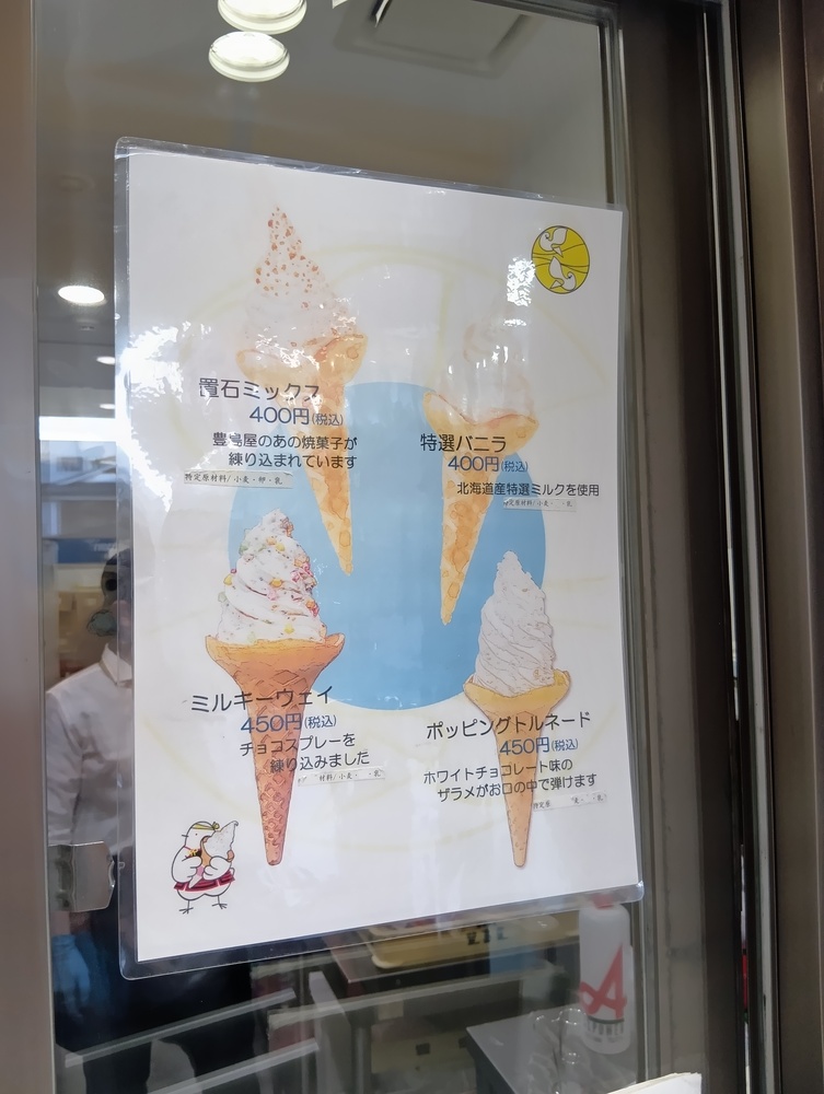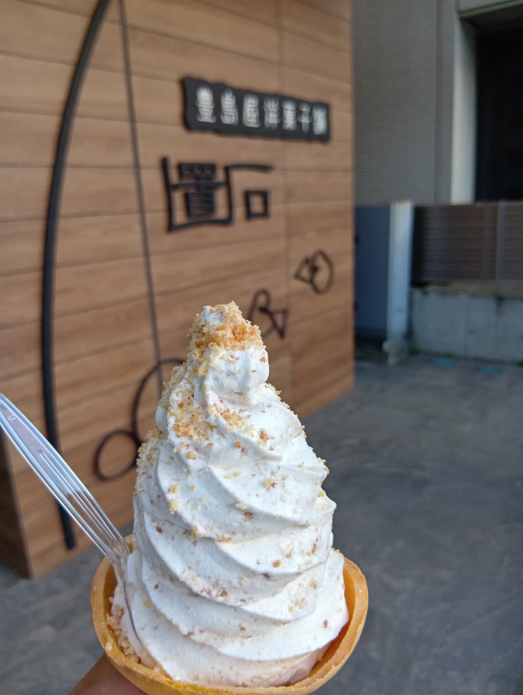 ↑置石ミックス!鳩サブレーが混ざる、ソフトクリーム。