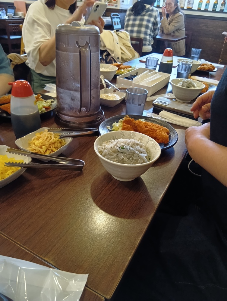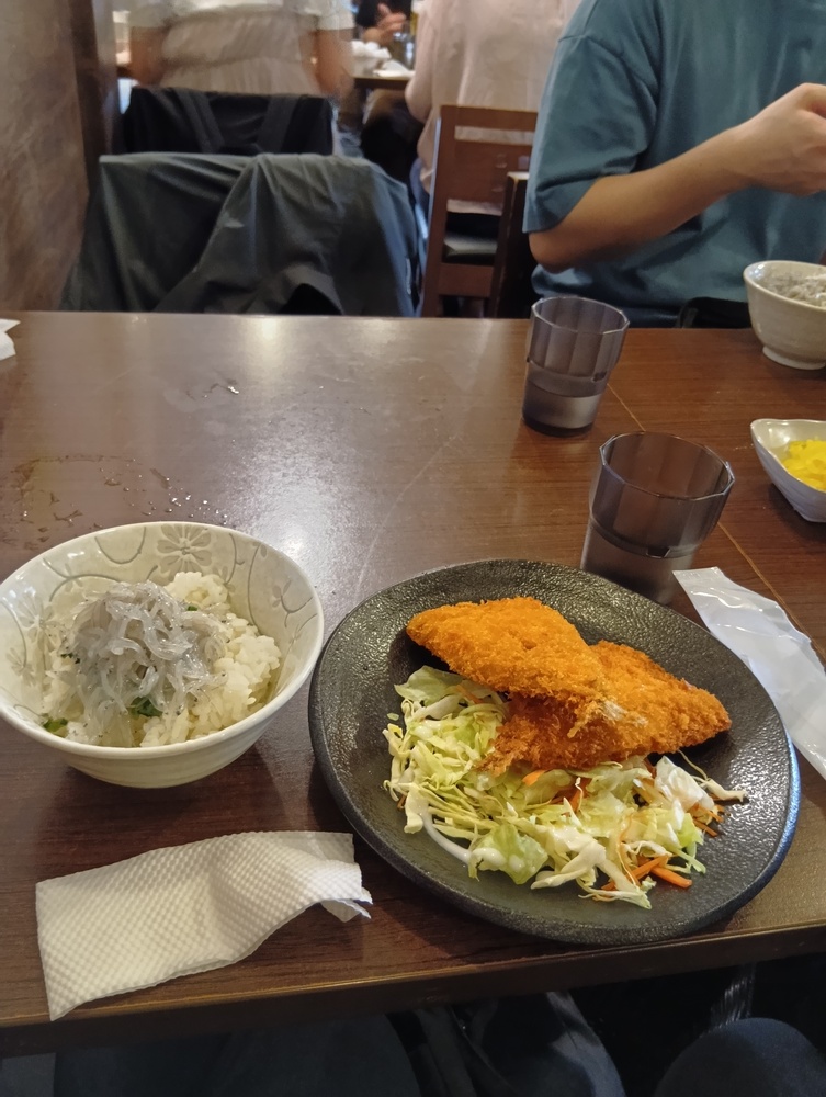 ↓主催者おすすめの「アジフライ+生しらすご飯」です