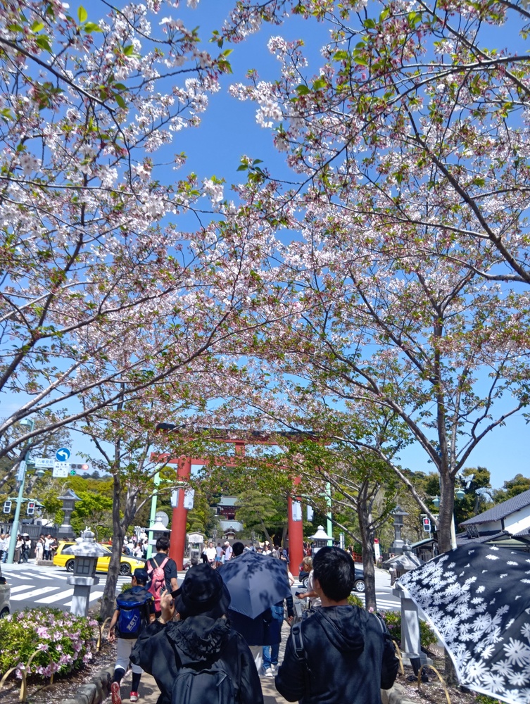↑鎌倉の若宮大路。桜吹雪を期待しましたが、その時期はどうやら終わったようです