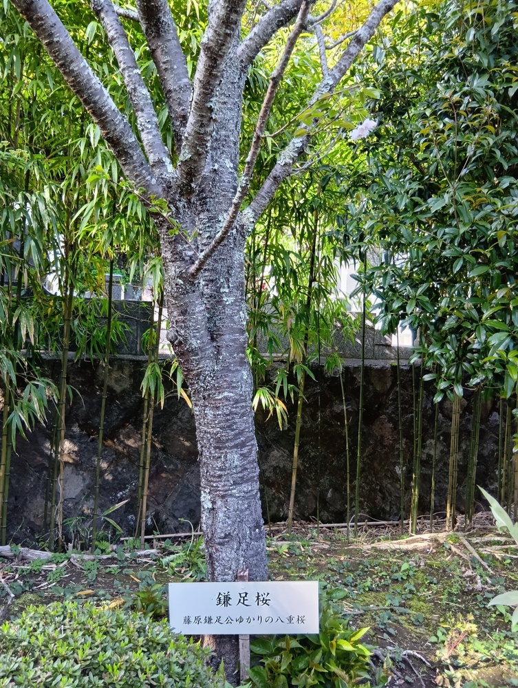↓近くに鎌足桜が咲いていました。昔、藤原鎌足が鎌倉に宿泊して、鎌をこの地に埋め、それが鎌倉となったという伝説があり、木更津から鎌足桜を移植したそうです