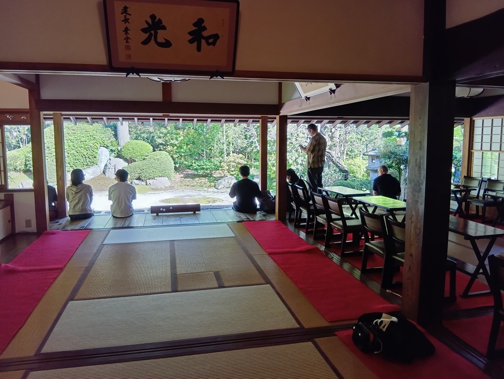 ↑枯山水の庭園を見ながら、抹茶をいただけます🥳
