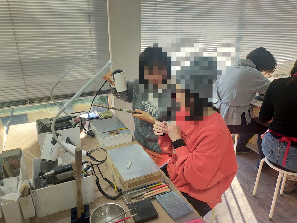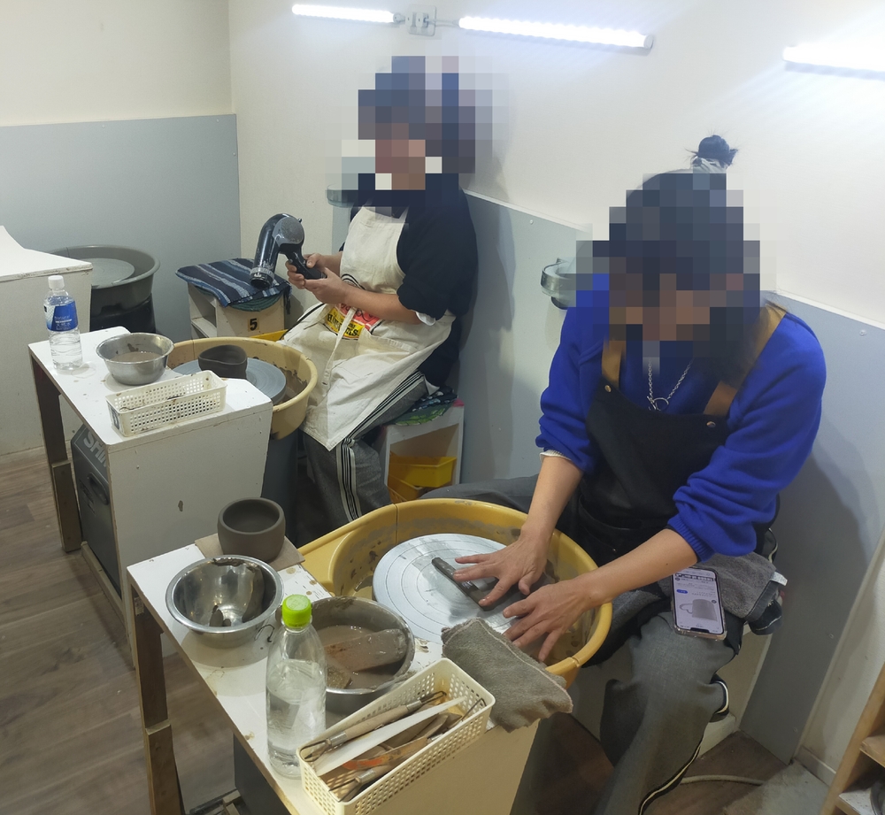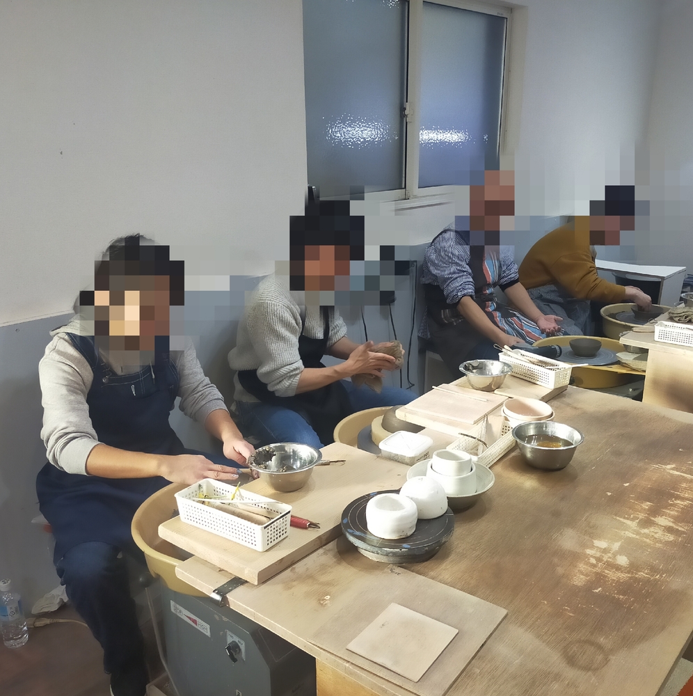 町田の陶芸教室にて、2回目の来店です。今回は電動ろくろとシルバークレイ体験を二組に別れて体験してきましたよ。なかなか電動ろくろを体験する機会はないかもですね、こちらは同時に6人が体験できますのでイベントにピッタリ!