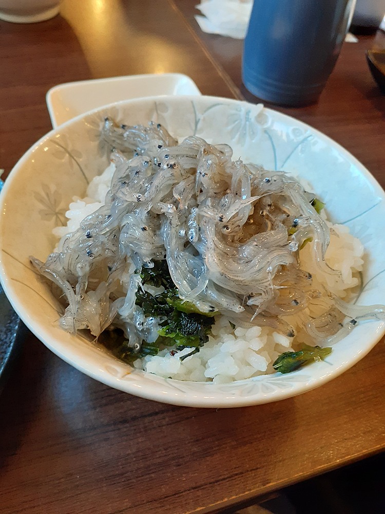 ③昼食会場(メニューはいろいろありますが、アジフライと生しらすがおすすめです)