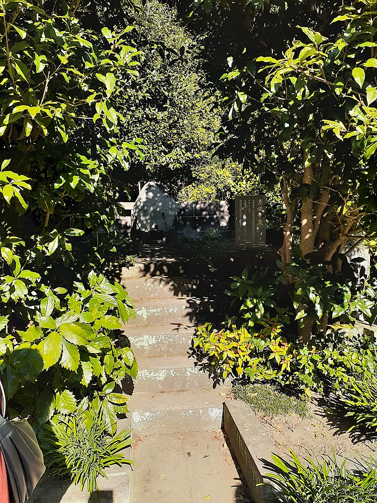 ②妙本寺(門の前でこの土地の歴史を説明。少し怖い鎌倉時代のお話でした。知られざる日蓮宗の大きなお寺です。写真は知られざる鎌倉殿四代目の奥方のお墓です)