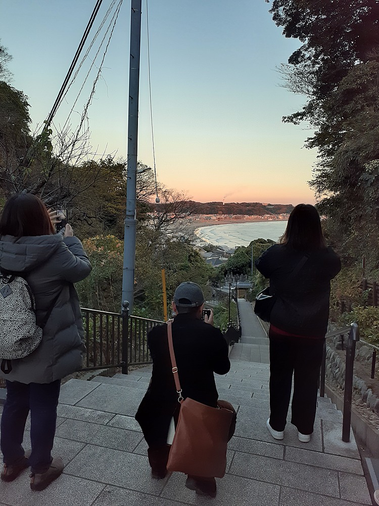 ⑪成就院(参道からの由比ガ浜は夕焼けに染まり、独特の感動風景が見られました)