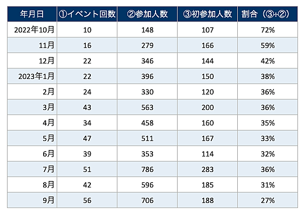 ・紹介など申込なしで当日参加している人はここには含まれていません。体感では今まで20人くらいいるとおもいます。