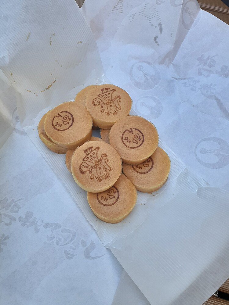 ③都まんじゅう(画像にあるように、小さい1個45円のカステラ饅頭です。八王子のソウルフードであり、ひっきりなしに並んでいました。参加者で10個購入してみんなでベンチで食べました。温かくて美味しいですね)