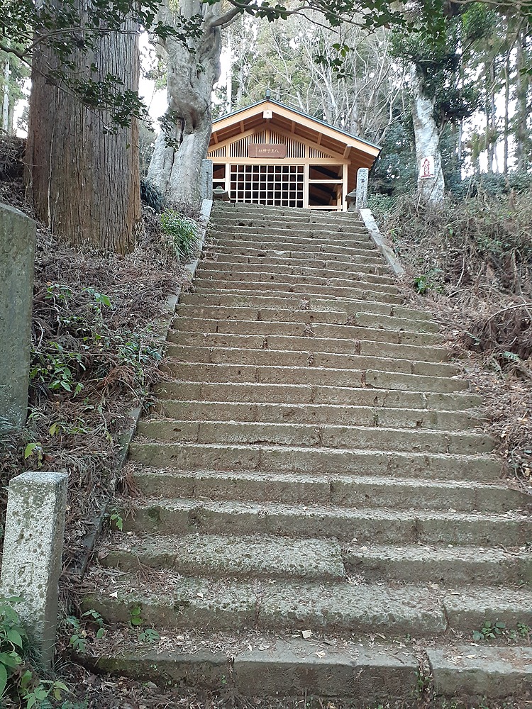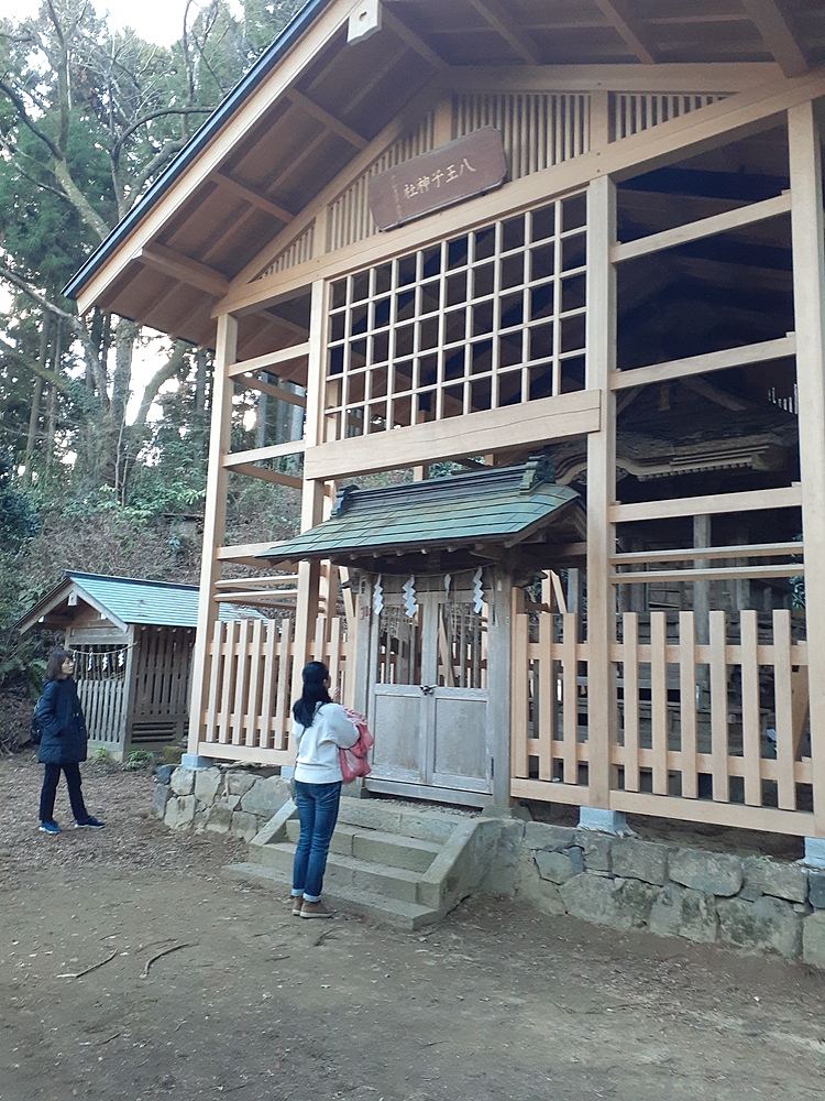 ⑥八王子神社(八王子の名前の由来の神様が祀られています。こんな山の上なのに、立派なお社でした。横には目がするどい、天狗の像がありました)