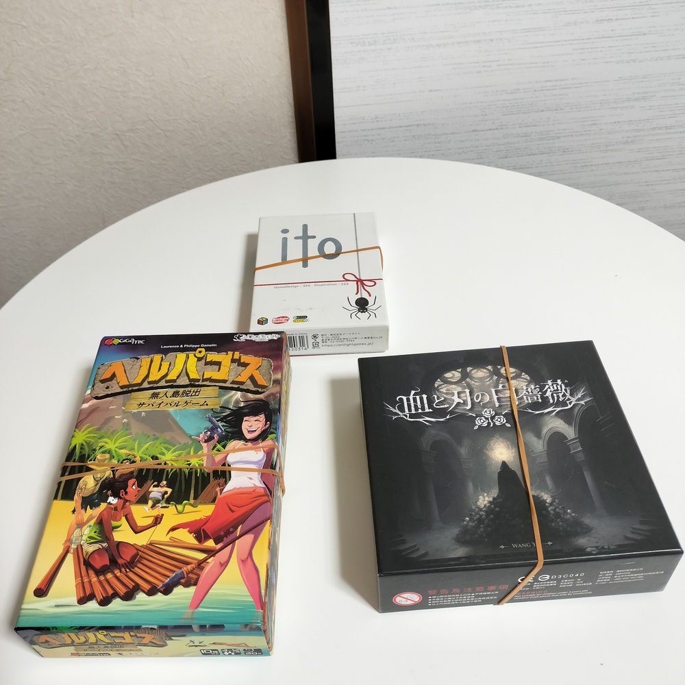 まずはボードゲーム初心者卓とボードゲームベテラン卓で別れて、初心者卓ではitoを楽しんでました!