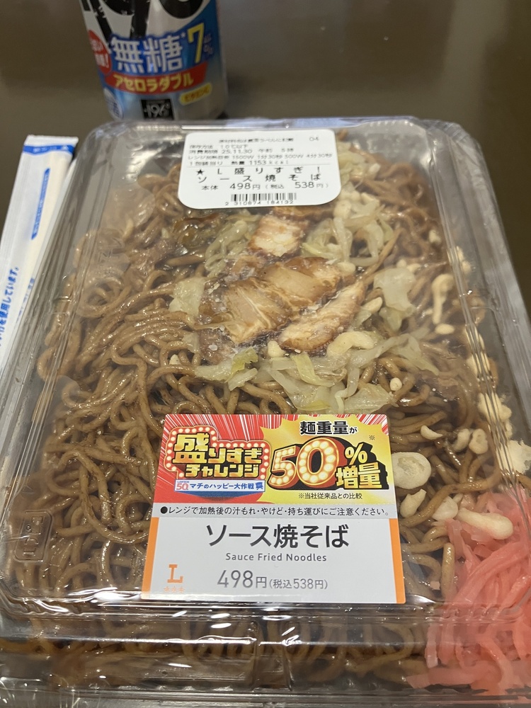 バイト先のローソンでその大盛りの焼きそばを棚に並べてる時