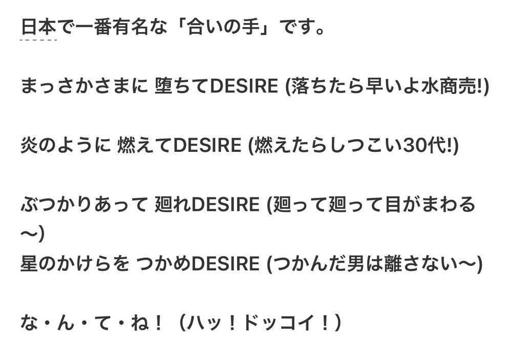DESIREでは日本一有名な合いの手をご用意!皆でコールしました笑笑