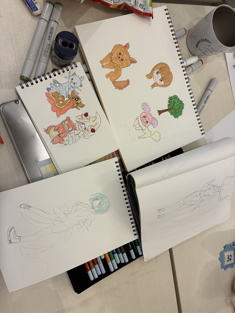 お絵描きカフェ🎨✍💕にて、7人で絵を書いて交流しました(*^^*)✨️ゆる〜い雰囲気で、どんな方でも参加しやすいサークルだと思います(笑)おのおので、好きな絵を書いて色塗りして、見せ合いました😊談笑しながら、なんでもない雑談して楽しいひと時を過ごせてみんな満足してくれてました😋💮途中で帰った人もいますし、最後までいてくれる人もいて、1時間~3時間くらいみんなで居ました⸜🌷︎⸝今後も、こんな機会を設けてみんなが楽しくのんびり過ごせる会を開けたらなと思います💐🤍