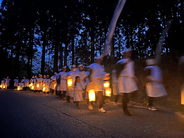 新潟県で毎年10月上旬に開催される狐の夜祭り。約3キロの山道を狐のお面をかぶって、踊り騒ぎながら歩く珍しいお祭りです。辺りが暗くなり始めると、笛の音と拍子木の音が山あいに響き渡ります。長い提灯の列がゆらゆらと揺れる様子は、まるで狐火のようで幻想的なお祭りです!