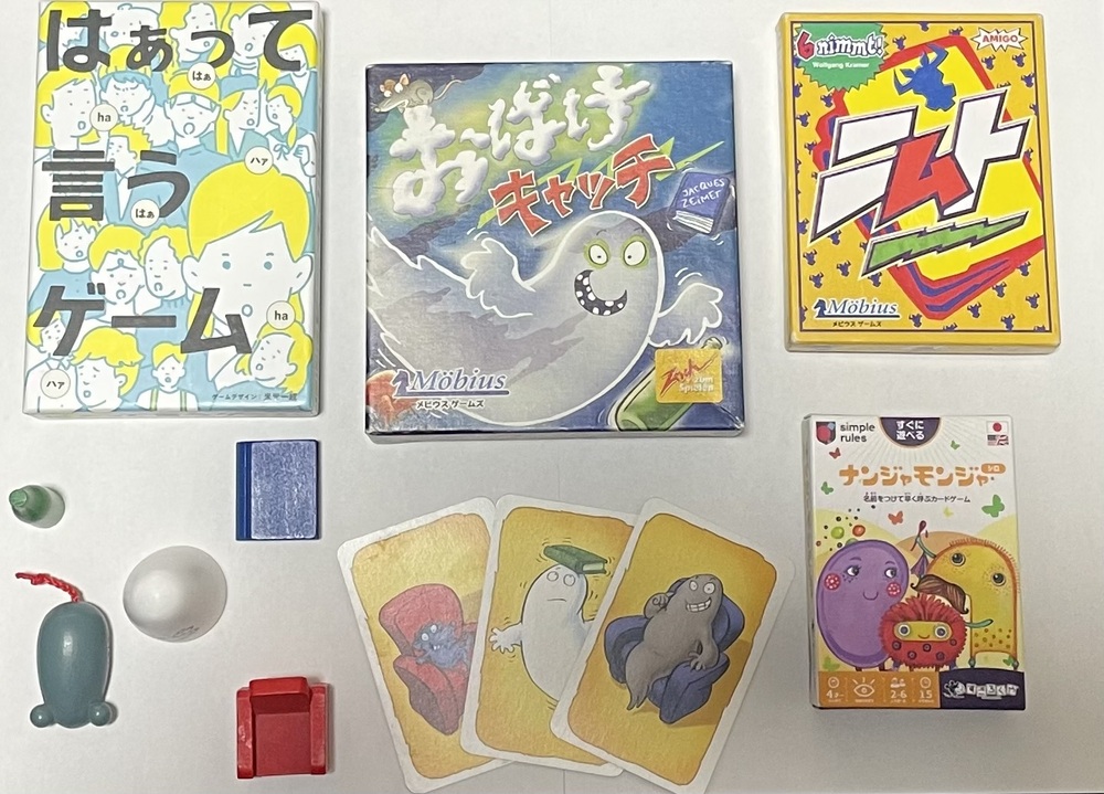 『お化けキャッチ』『ニムト』『ナンジャモンジャ』など、3分でルールがわかる簡単なゲームから、『街コロ』『カタン』など30〜60分じっくり楽しめる名作まで、その日のメンバーに合わせて選んでいます。