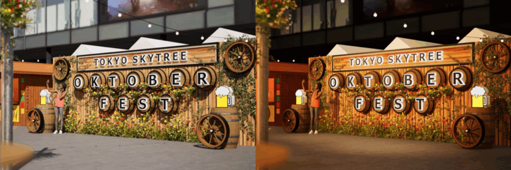 東京スカイツリーを目の前に望めるロケーションが魅力の会場で、ドイツの樽生ビールとともに、長さ30センチのソーセージがぐるぐる巻きになったトルネードブルストや、ドイツ伝統の焼き菓子パン、プレッツェル、シュニッツェルなどビールに合うフードメニューを味わうことができます!😸😽