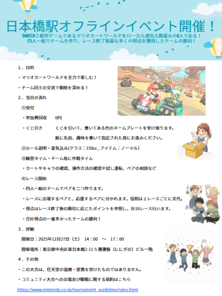 日本橋駅のスペースを借りてマリオカートワールドのイベント開催します!