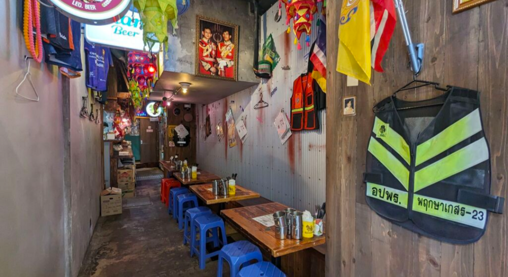 店内はタイの屋台や路地を思わせるポップでカラフルな装飾。BGMや雑貨の雰囲気も含めて、まるで現地にいるような旅行気分で楽しめます。