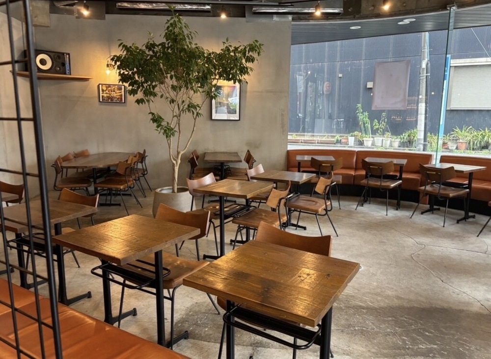 大きな窓と広々とした店内で、カウンター席・テーブル席・ソファ席があり、ひとりでもグループでも快適に過ごせます。