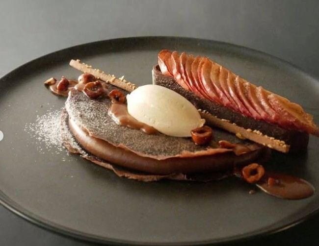 “クレープ・オ・ショコラ、焼きりんごのせクラフティ、ノワゼット・アイスクリーム” な構成です。2,500円。