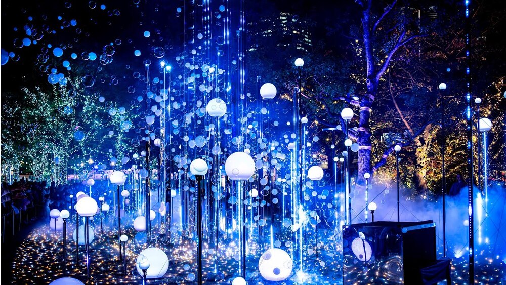 『東京ミッドタウン』では、煌めくイルミネーションがミッドタウン・ガーデンを彩りホワイトクリスマスのような幻想的な雪としゃぼん玉の演出が楽しめます🍭