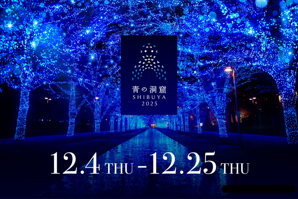 『青の洞窟』は、12月上旬からクリスマスまでの約1ヶ月間、渋谷公園通りから代々木公園ケヤキ並木までの間が無数の青い光に包まれる渋谷の冬の風物詩で、木々が青一色の光に彩られ路面には反射シートが敷かれ光の反射によって洞窟の中にいるような幻想的な雰囲気を味わえます🍡