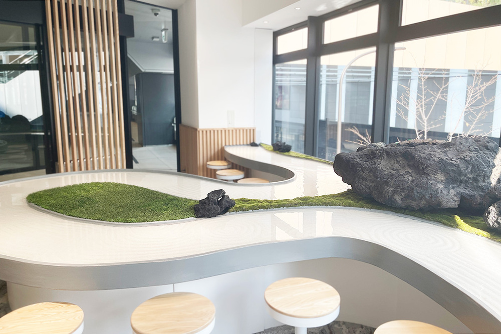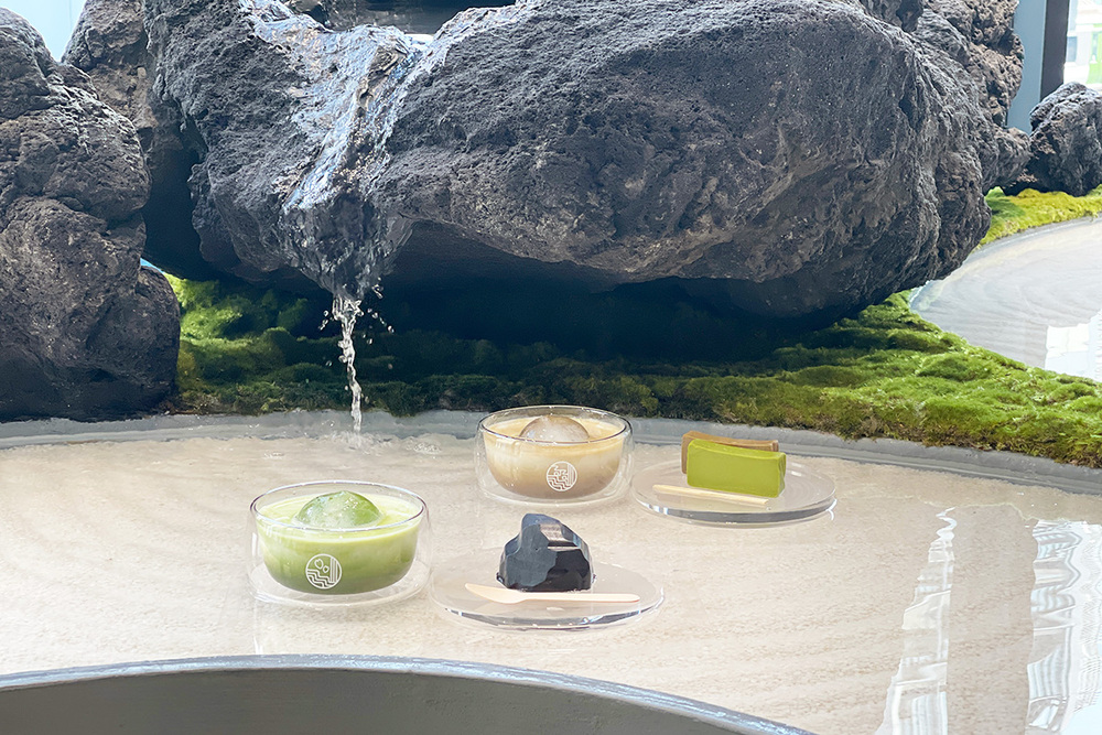 『RURU SHIBUYA』は、おしゃれで芸術的な日本庭園カフェで、テーブルに水が張られた「濡山水(ぬれさんすい)」という独特のスタイルが特徴です。 丁寧に点てられた本格的な抹茶、岩のような見た目のユニークなスイーツ、溶岩石から流れる水の音が響く都会の喧騒を忘れる落ち着いた空間で、水の上に抹茶やスイーツが浮かんでいるような雅で幻想的な光景はとても綺麗です⭐️