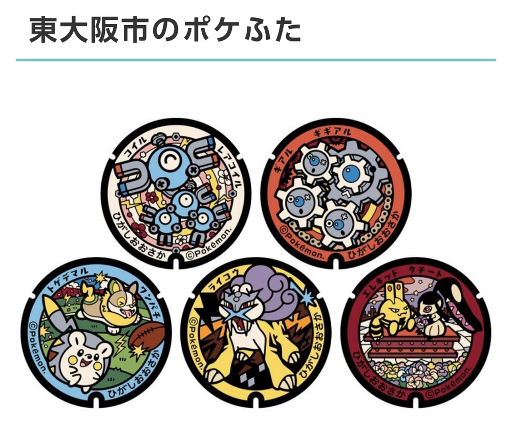 ポケモンの絵が描かれたマンホール蓋『ポケふた』が全国で次々に発見されているようです😳