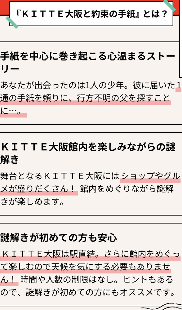 ・内容:KITTE大阪館内をめぐりながら謎解き🔍