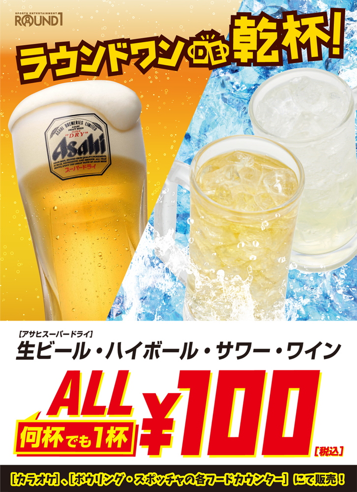 なお、池袋のラウンドワンではビール、ハイボール等が100円で飲めるみたいなので軽く飲みながらボーリングをするのも全然ありです😊