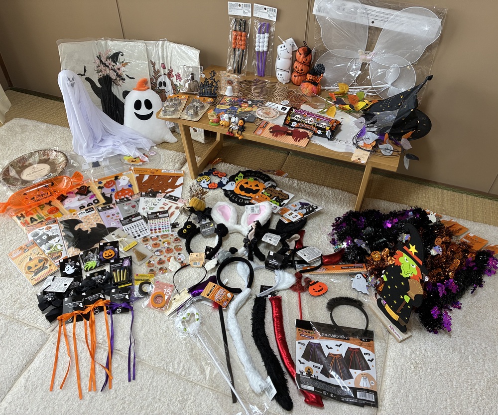 お菓子作りの材料や必要備品、部屋の飾り付けの雑貨、コスプレのグッズ、ハロウィンメイクの顔に貼るシールなどは、こちらでご用意します🍀*゜