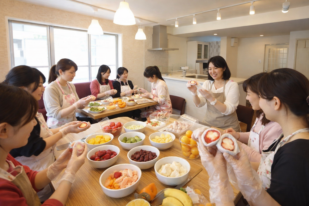 カラフルなフルーツ大福作り体験です✨