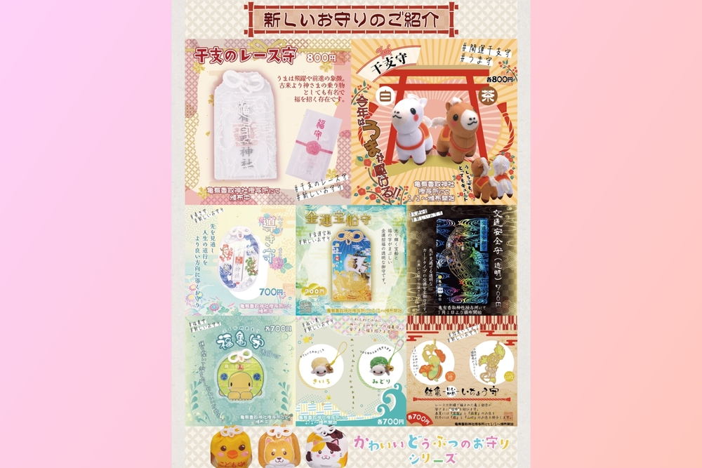 他にも新しいお守りが色々出てます!今年の干支をデザインしたレース守りやぬいぐるみお守りなどもあります!