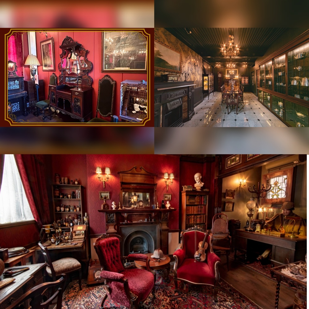 ヴィクトリア時代の暖炉や椅子、ランプ、バイオリン、薬瓶など、本物のアンティークを用いて細部まで忠実に再現し、まるで名探偵が今にも現れそうな臨場感を体験できます!