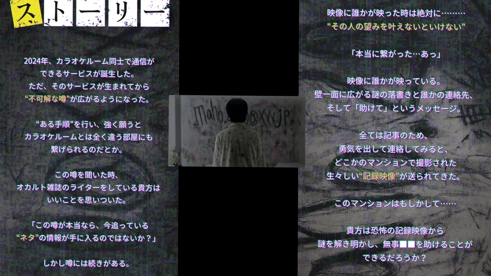 貴方は恐怖の記録映像から謎を解き明かし、無事■■を助けることができるだろうか?』