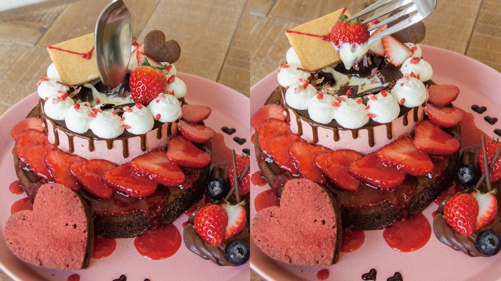 サムネの画像は、2月限定のイチゴ×ショコラのパンケーキとドリンクです!
