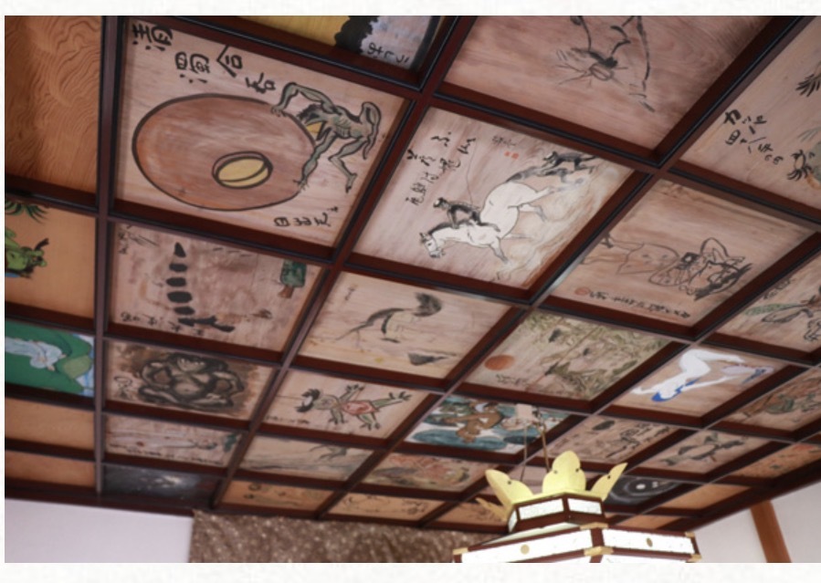 →拝殿に上がって天井を見上げると