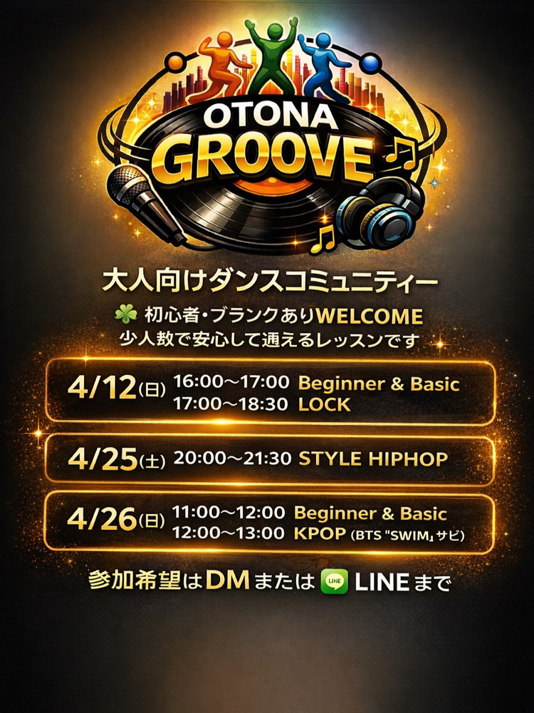趣味としてダンスを始めたい方、久しぶりに踊りたい方、お一人で参加したい方にもおすすめです。