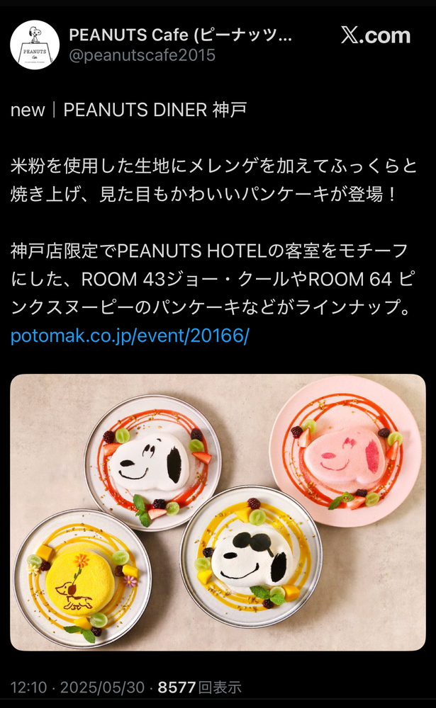PEANUTS DINER 神戸でスヌーピーのパンケーキを食べませんか?