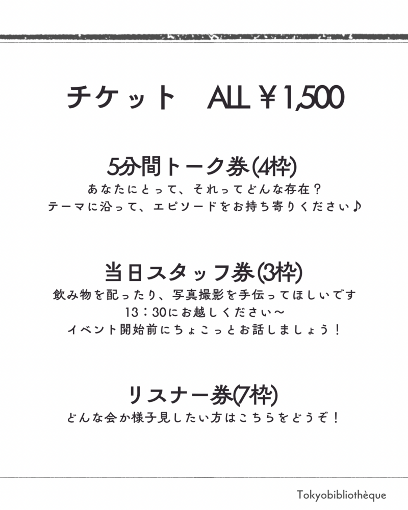▶︎当日スタッフ券をご購入の方は13:30に集合をお願いします