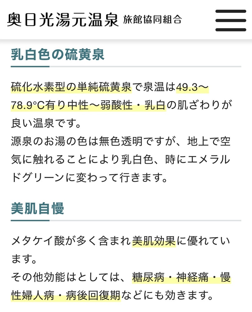 ・休暇村日光湯元・・・奈良時代に開湯した歴史あるかけ流し温泉、お肌に優しい泉質が好評