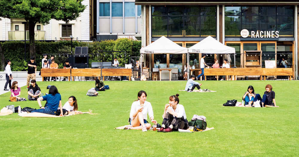 芝生に集まっている人たちの姿を見て、
