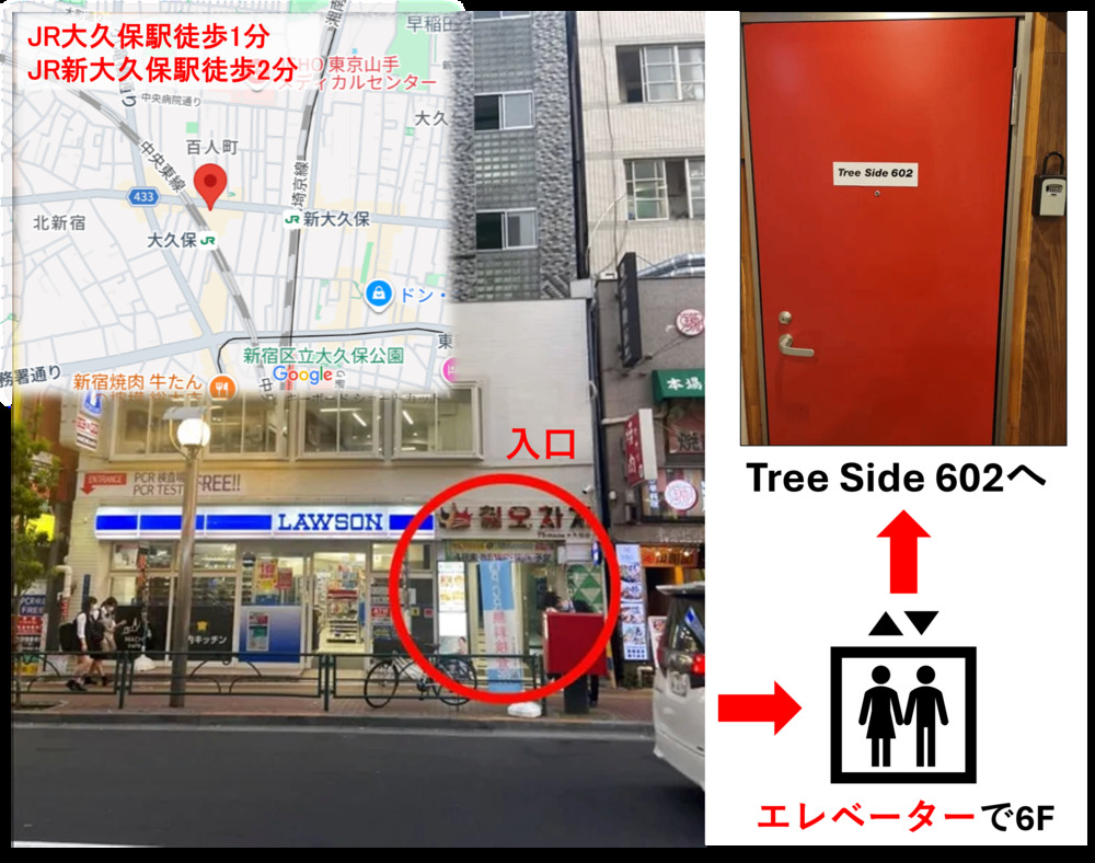 東京都新宿区百人町1-17-6 Tree Side 新大久保 602 6F
