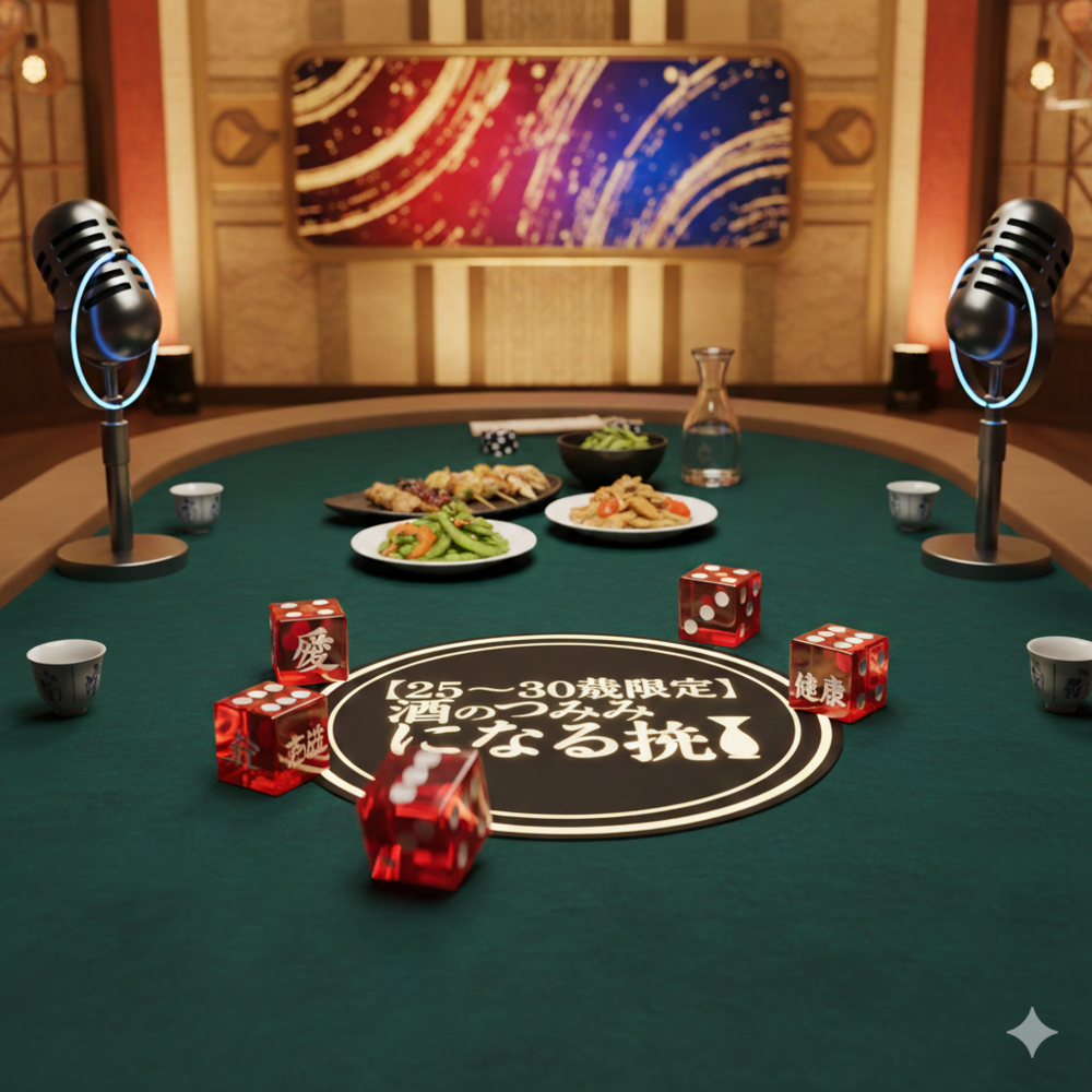 テレビ番組のような「サイコロトーク」形式で、みんなが持ってきたエピソードを「酒のつまみ」にして盛り上がる、カジュアルな交流会です!