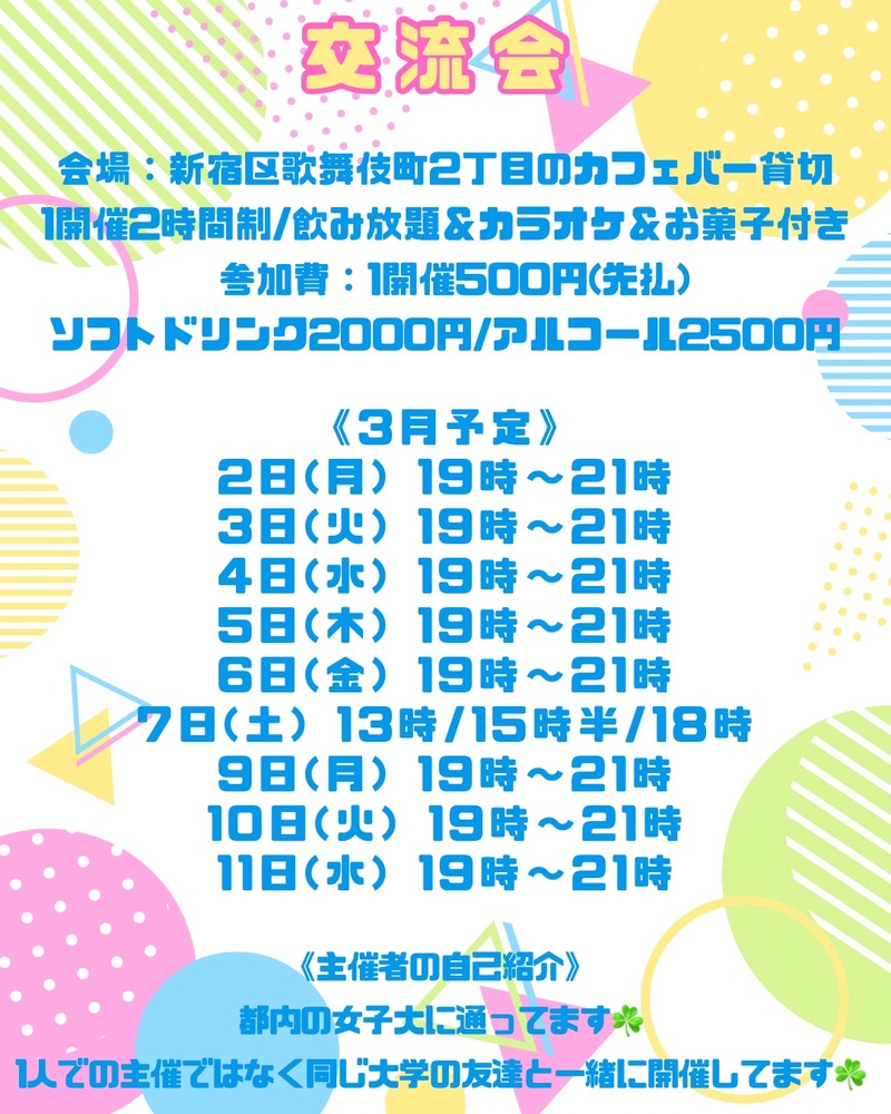 1人での主催ではなく学校の友達もセットで交流会を開催予定です☘️