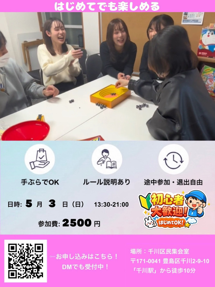初心者9割✨1人参加OKボードゲーム会|途中参加OK 5/3