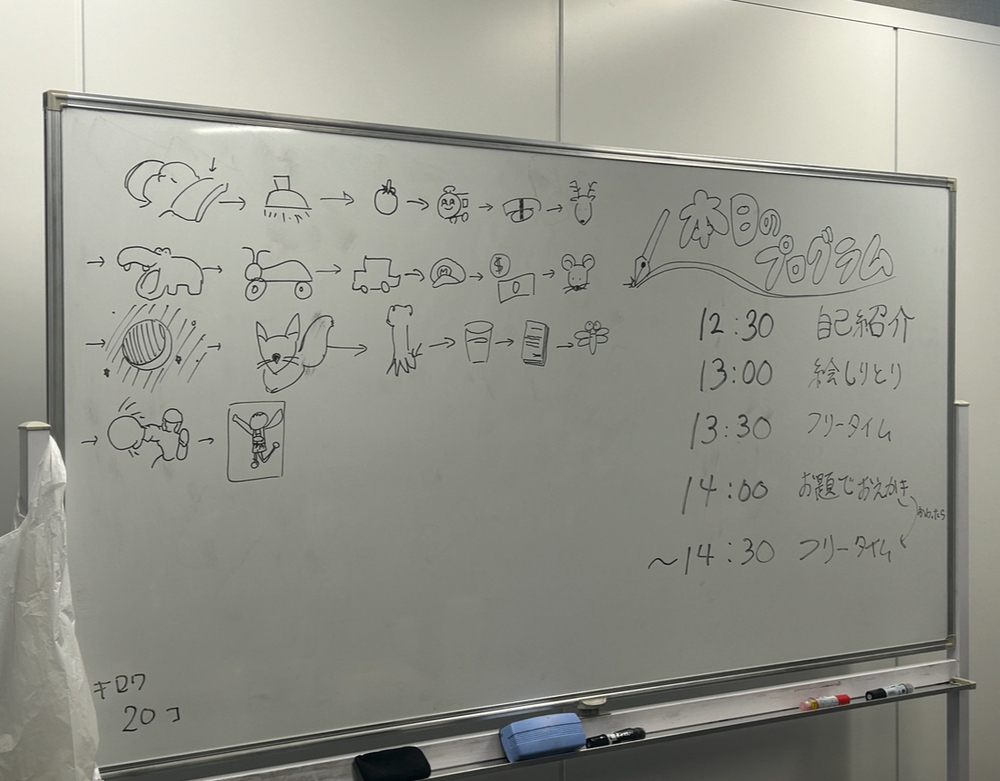・持参のiPadやスケッチブックに絵を描きながら雑談(メイン)