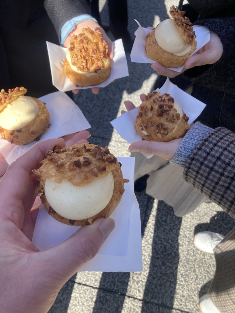 ①人気の肉屋、パン屋、シュークリーム屋や老舗和菓子店で食べ歩き