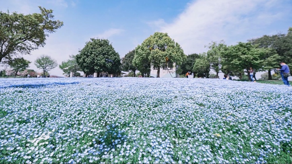 舎人公園がこの時期だけ、ライトアップされたネモフィラでとてもロマンチックに変身✨