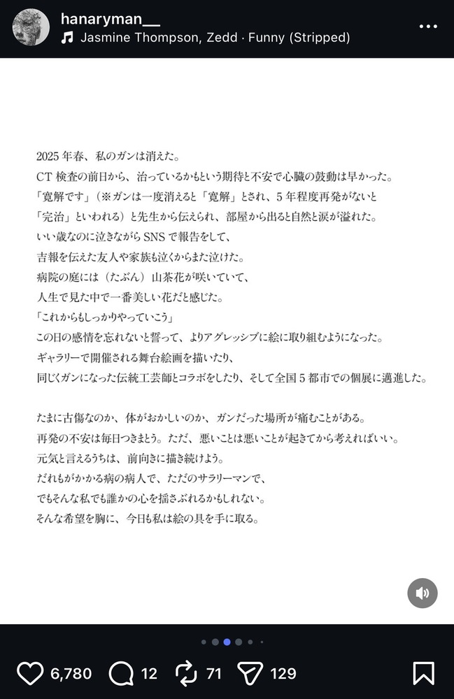 2024年夏にステージ3の悪性リンパ腫と診断されたことを機に、入院生活で花を描き始めたサラリーマンアーティストさんです✨️